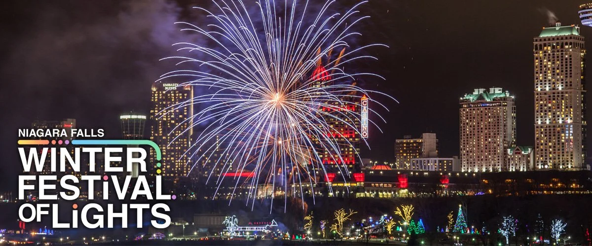 Winter Festival of Lights Fireworks Over the Falls
